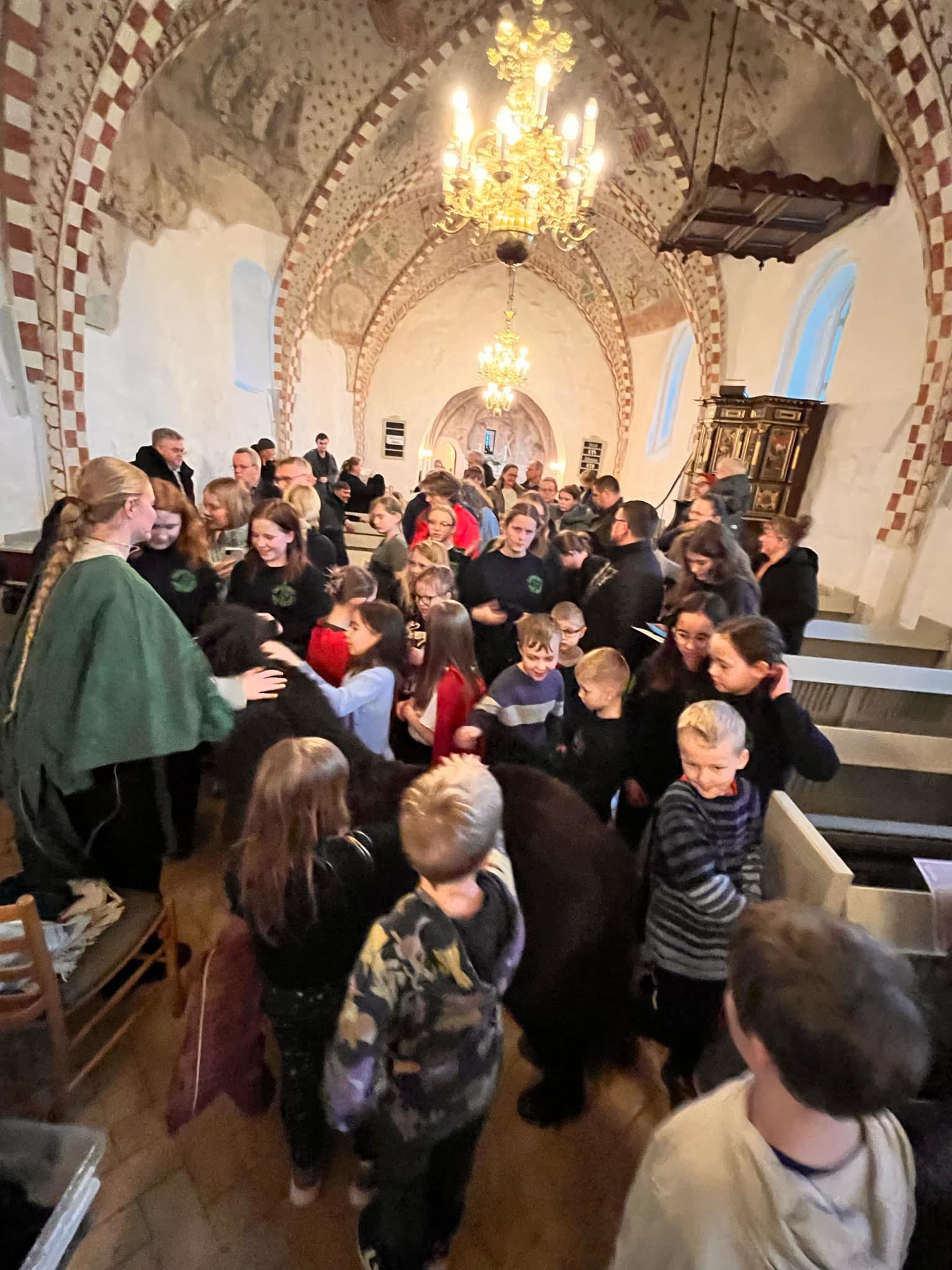 Kirkens ansatte og frivillige spiller et rollespil over en kort bibelfortælling, hvor børn og barnlige sjæle er meget velkomne til at medvirke, hvis de har lyst til det.