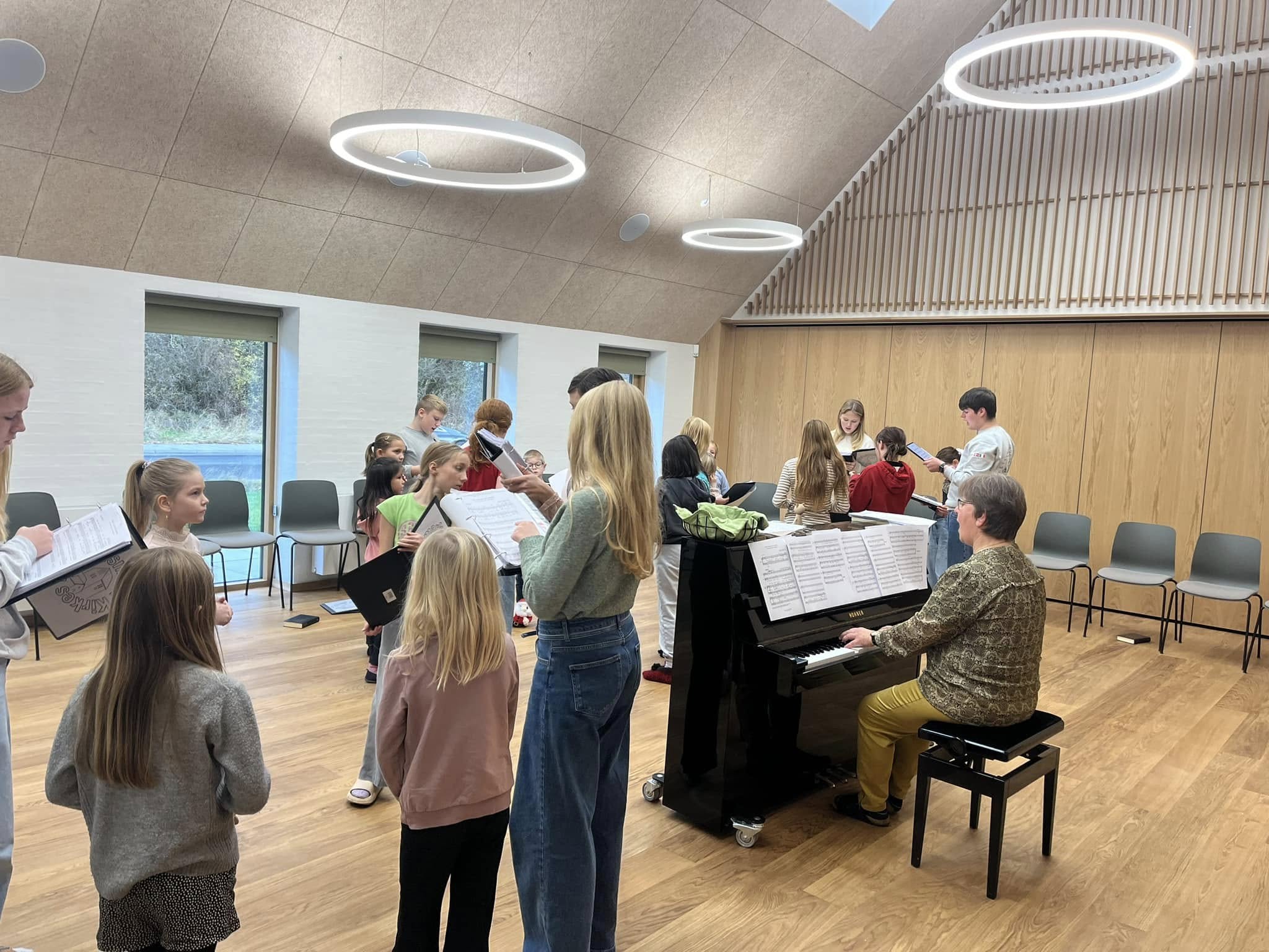 (ved dårligt vejr øver vi i musiklokalet på skolen). Kathrine henter børnene ved hovedindgangen til Skolecenter Jetsmark, så de følges sammen over til Kirkecentret (Jetsmark kirkevej 15). Børnene skal derfor gå hen til skolens hovedindgang, når de har fået fri. Kathrine følger ligeledes børnene tilbage til skolen igen.